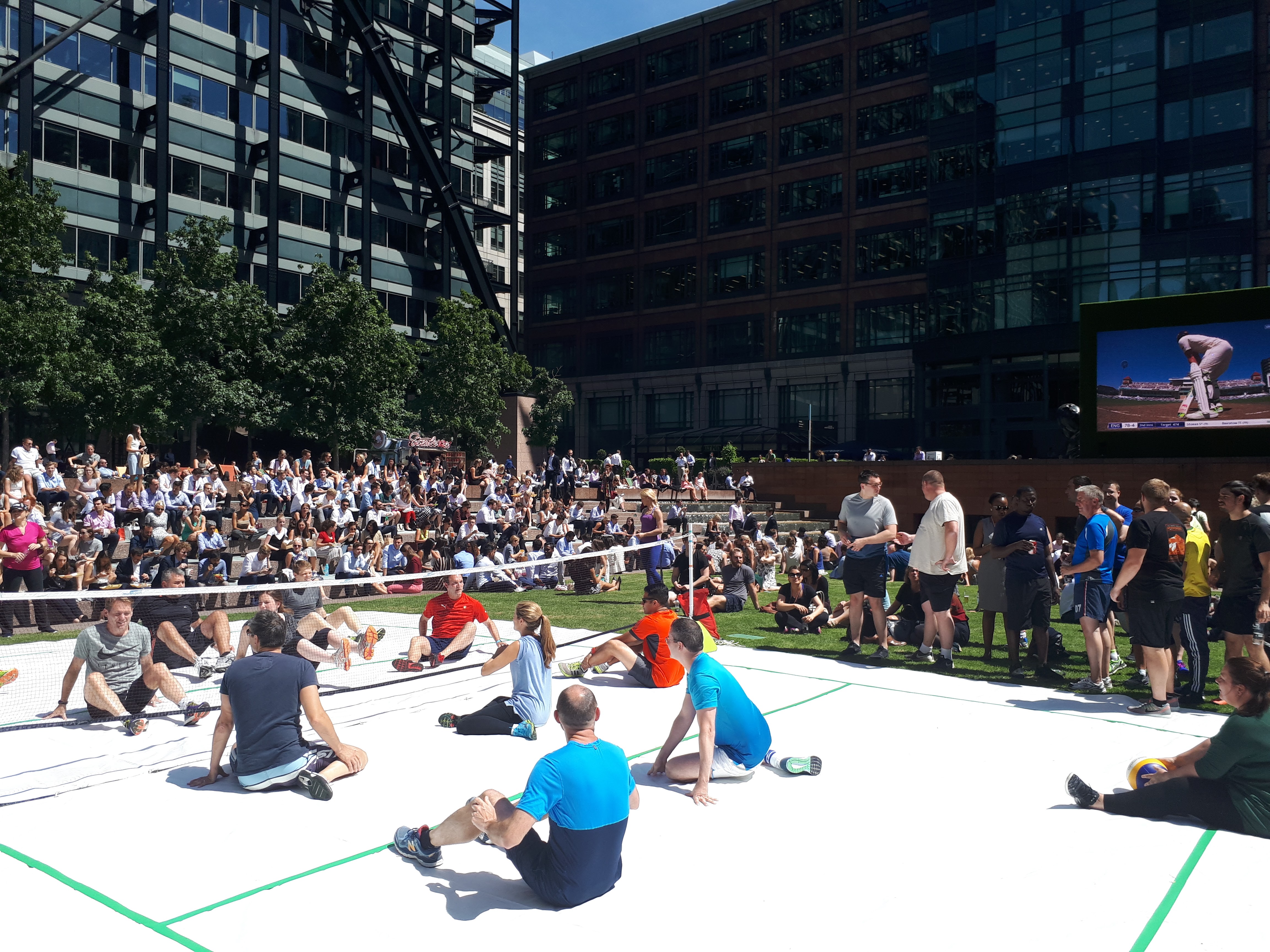 The weather couldn’t have been better in London for the delivery of a competition for UBS staff outside their office at Exchange Square.